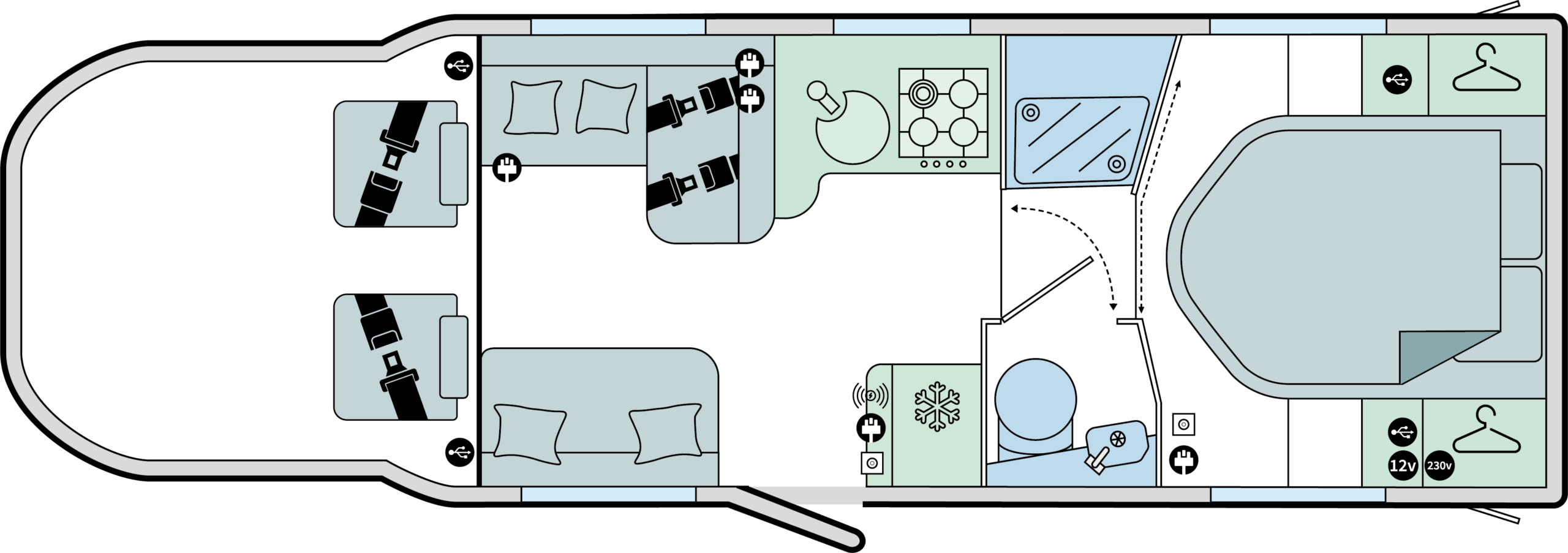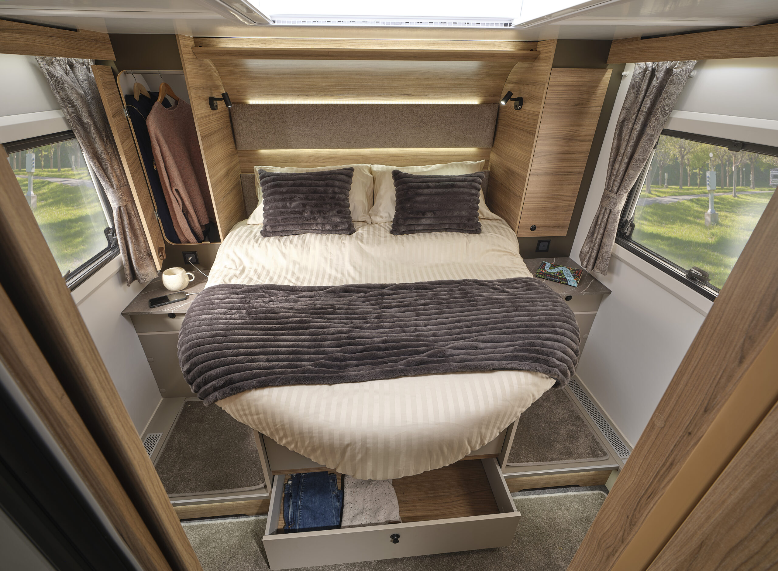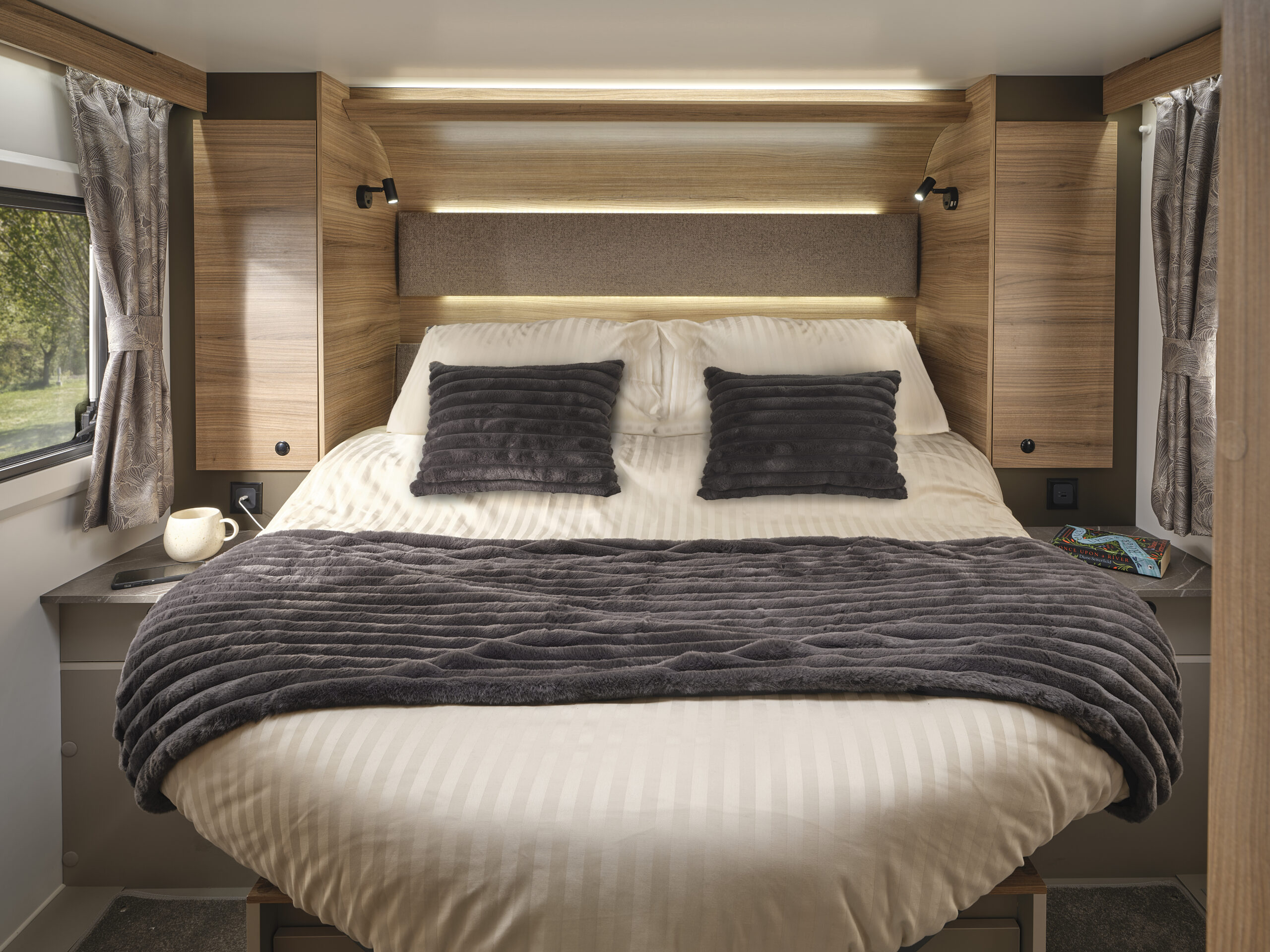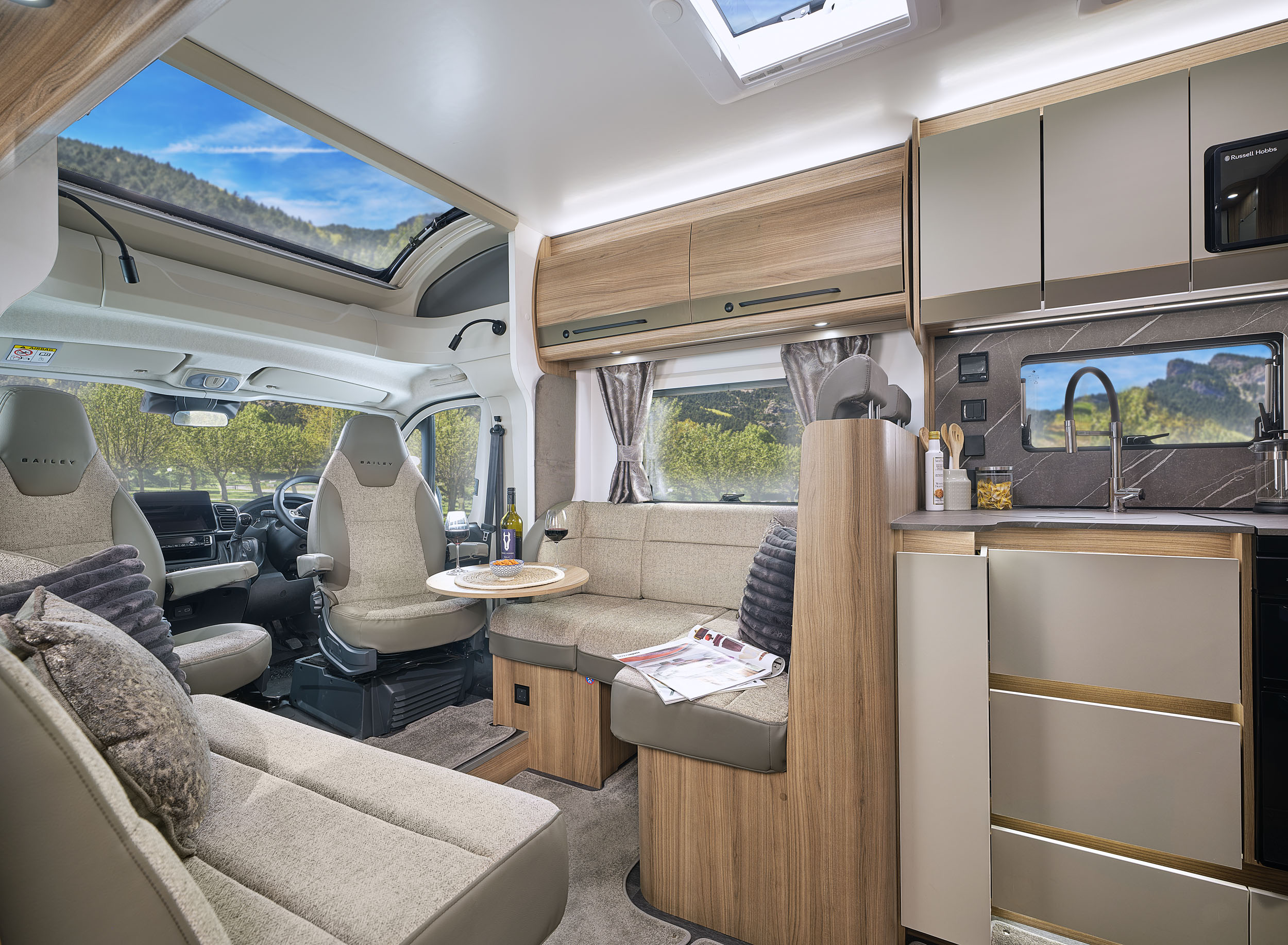 The Autograph 79-4i offers a bright and contemporary interior designed with comfort and usability in mind. The fixed rear island bed provides easy access from both sides and a comfortable sleeping area, while the front lounge creates a welcoming space for relaxing or dining.