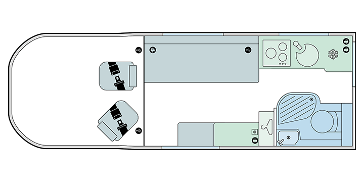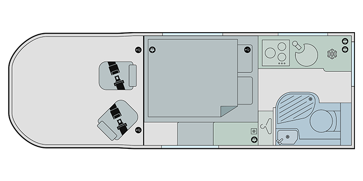 The Endeavour B63 offers a bright and contemporary interior with a highly practical layout. Clever use of space provides comfortable living and sleeping areas, while the integrated washroom and quality appliances make it well suited to both short breaks and extended touring.