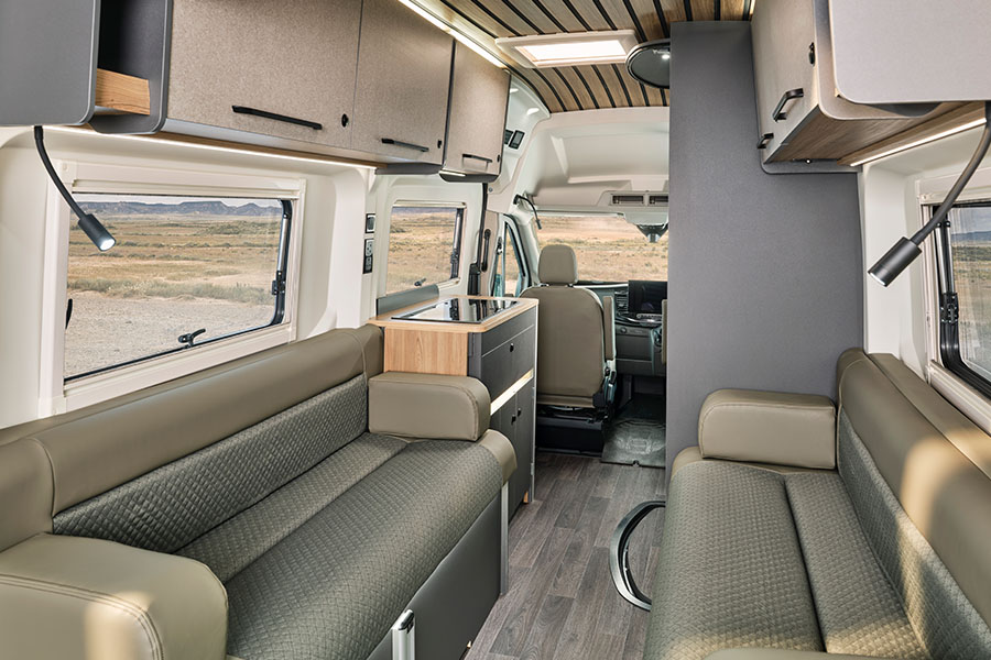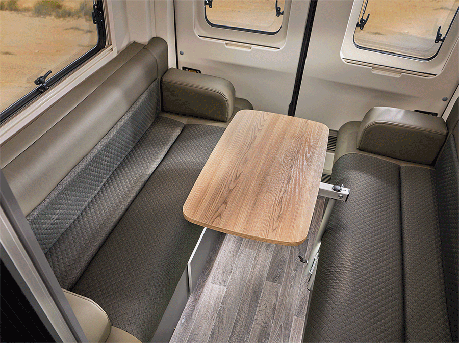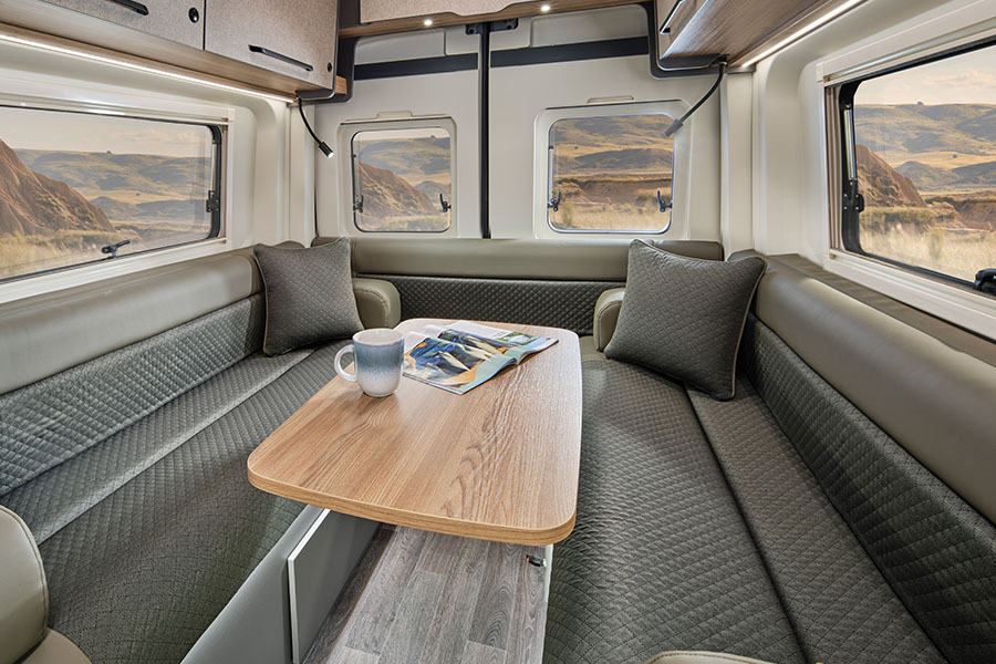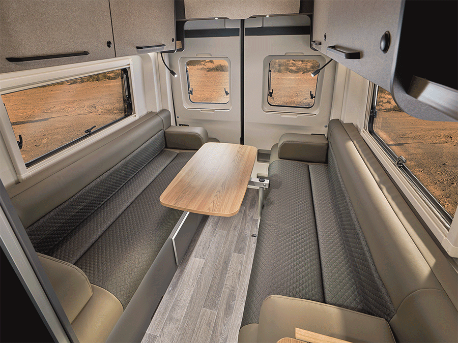 The Endurance E62 features a well-designed and practical interior, offering comfortable living space in a compact footprint. The flexible rear sleeping layout allows for either a large double bed or twin singles, providing versatility to suit different touring styles while maintaining excellent comfort.